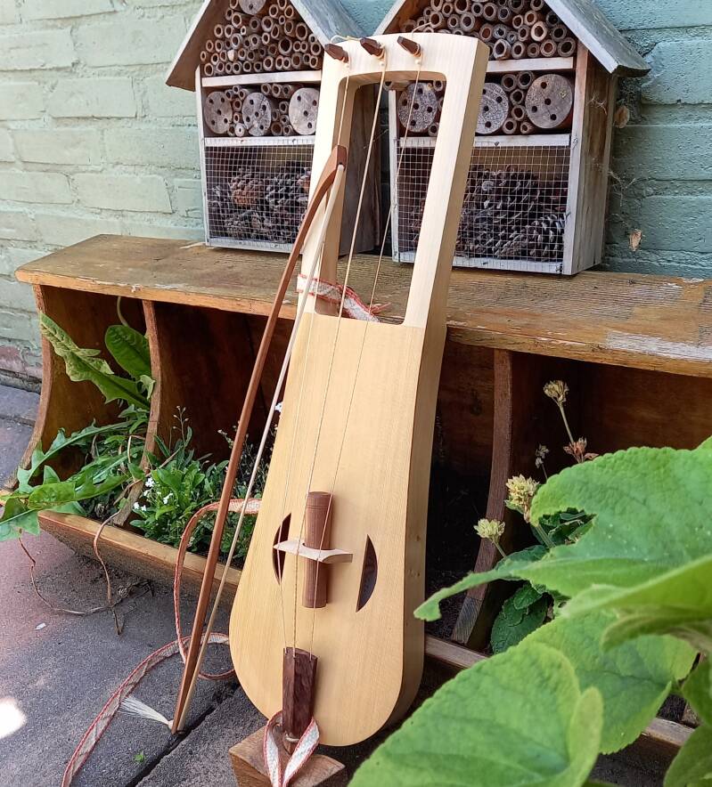 The talharpa or tagelharpa is a bowed lyre, with origins dating back to around the 11th century. Ours is a 3-stringed talharpa equipped with gut-strings. The bow is strung with horsehair.